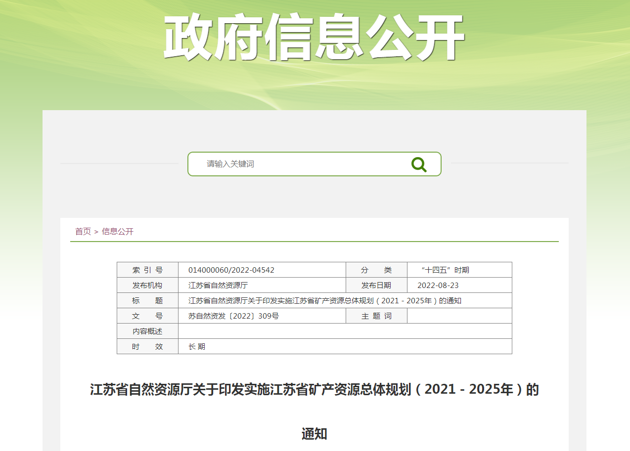 地方政策江蘇省礦產(chǎn)資源總體規(guī)劃:推進(jìn)“地?zé)?”開(kāi)發(fā)模式示范