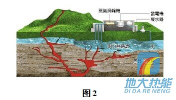 1)熱干巖過程法.與那些只從火山活動頻繁地區(qū)的溫泉中提取熱能的方法相比,熱干巖過程法將不受地理條件限制,可以在任何地方進行熱能開采.首先將水通過壓力泵壓入地下4~6 km深處,此處巖石層的溫度大約在200℃左右.水在高溫巖石層被加熱后,通過管道加壓被提取到地面并輸入到熱交換器中,熱交換器推動汽輪發(fā)電機將熱能轉(zhuǎn)化成電能.同時推動汽輪機工作的熱水經(jīng)冷卻后可重新輸入地下供循環(huán)使用.這種地?zé)岚l(fā)電的成本與其他再生能源的發(fā)電成本相比是有競爭力的,而且這種方法在發(fā)電過程中不產(chǎn)生廢水、廢氣等污染,所以它是一種未來的新能源.