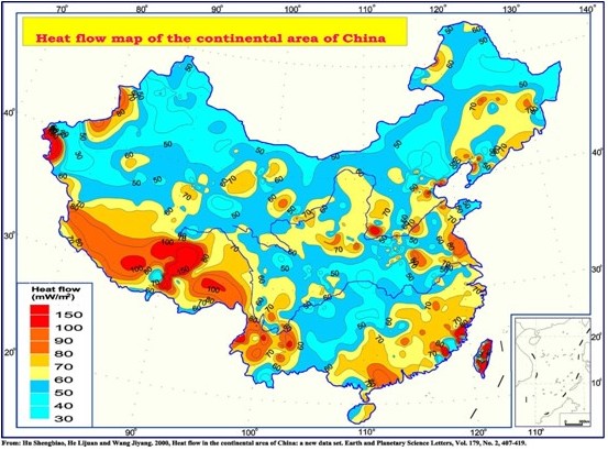 在中國(guó)地溫研究中發(fā)現(xiàn),各地區(qū)地溫梯度的變化很大。不同地點(diǎn)地溫梯度值不同,從各地研究經(jīng)驗(yàn)來(lái)講,國(guó)內(nèi)地下地溫梯度通常為(1-3)℃/100m,分布具有東部高、西部低;南部高、北部低的總趨勢(shì)。