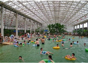 江蘇省洪澤縣老子山溫泉風(fēng)景 溫泉陽光浴場展示出亮麗的南國風(fēng)情,分布大型泳池和品類各異的水療、魚療、花藥浴、泥巴浴,不僅具有神奇的理療保健作用,還兼?zhèn)渑哦攫B(yǎng)顏、美白肌膚、調(diào)理身心等多重功效,享有蘇北熱海、澤國仙境、華東首席溫泉度假區(qū)之美譽。