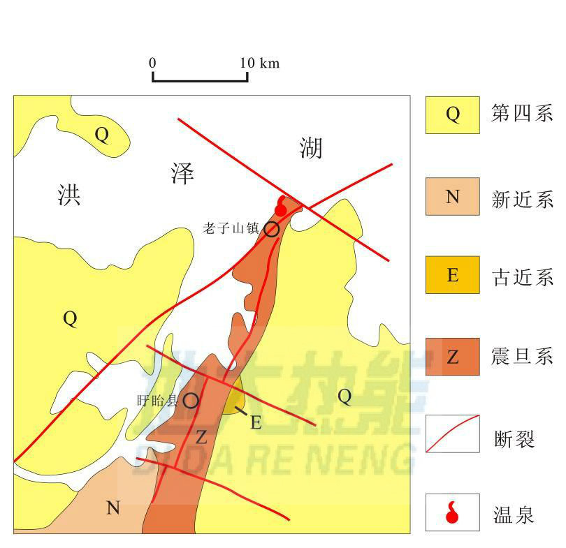 江蘇省洪澤縣老子山溫泉成礦機制![]() ![]() 江蘇省洪澤縣老子山溫泉區(qū)域地質(zhì)圖 |