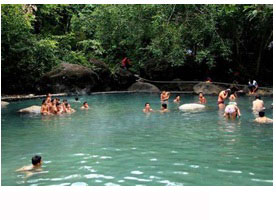甘肅天水街子溫泉風(fēng)景經(jīng)測(cè)定水溫39.5攝氏度,屬天然洗浴水溫,水質(zhì)為重碳酸鈉鈣型,含有20多種礦物質(zhì)及微量元素,具有醫(yī)療、美容、保健之奇效。 |